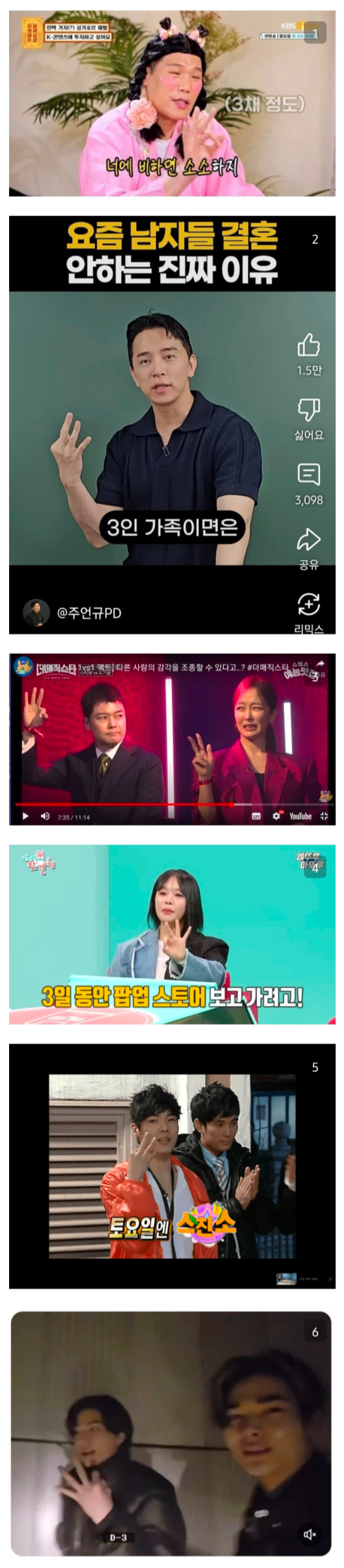 생각보다 많은 연예인과 유튜버들이 중국식으로 숫제를 세고 있었다.