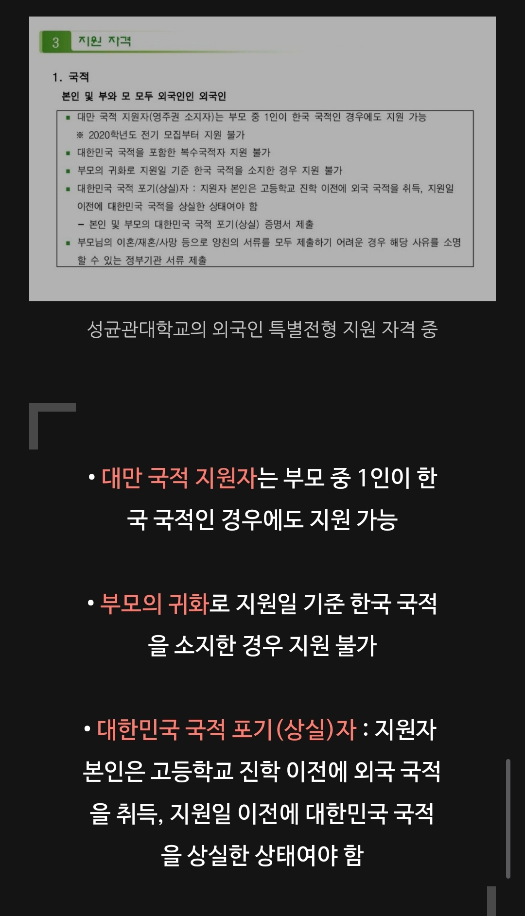 외국인 전형이나 재외국민 전형을 통해 명문대에 훨씬 쉽게 입학할 수 있다.