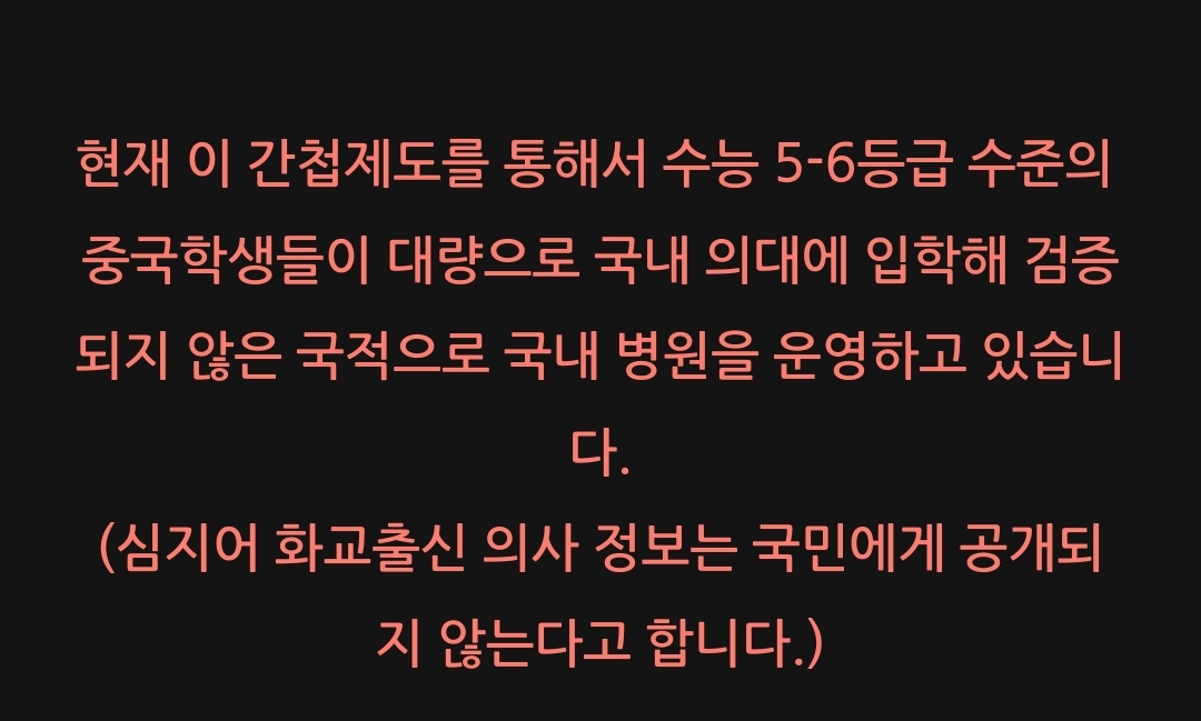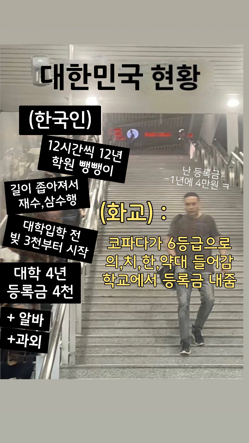 한국인들이라면 수능 전체 1등급을 받아도 가기 힘든 의대이지만 화교들은 성적 기준을 채우지 않아도 명문대에 쉽게 입학한다.