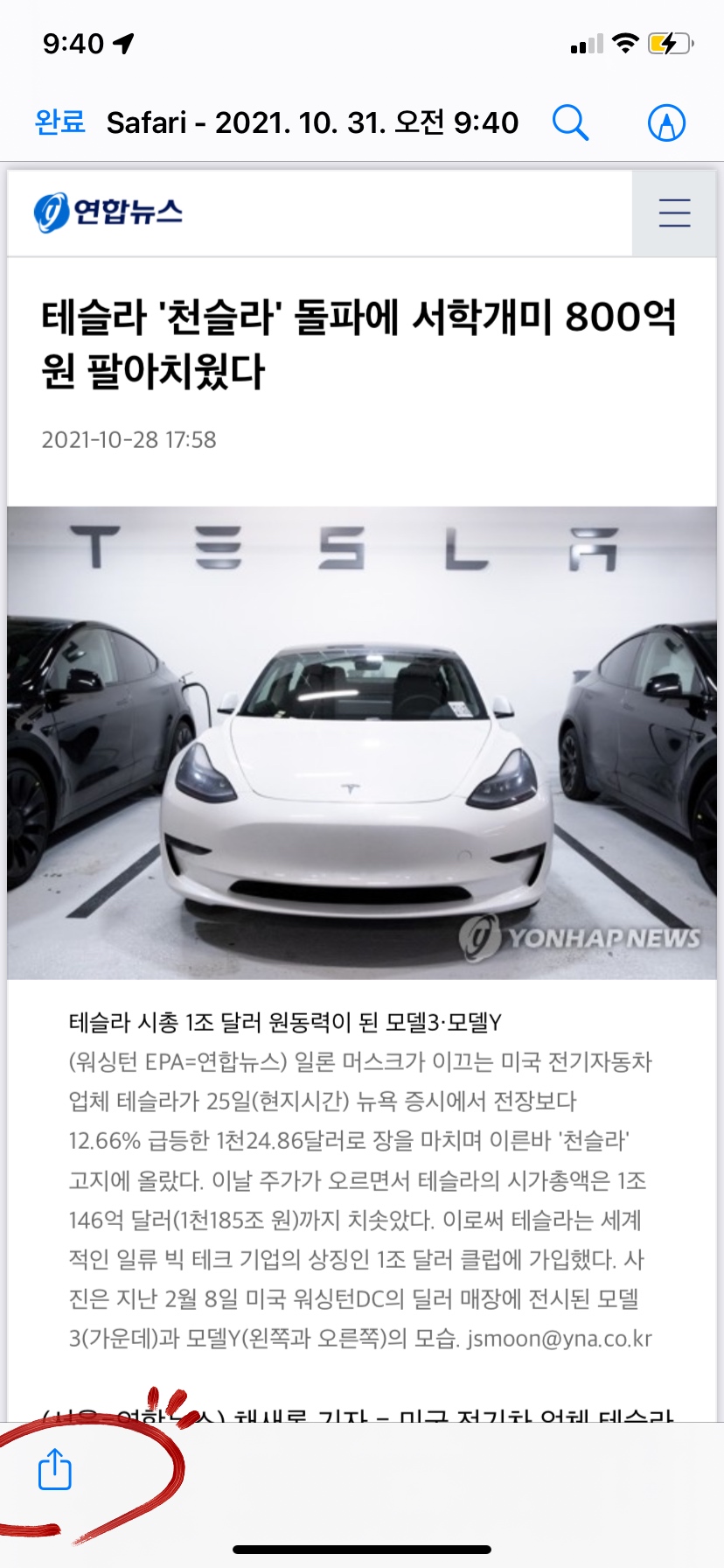 1. 본인이 PDF를 따고 싶은 웹사이트에 접속해서 하단의 공유버튼을 누른다.