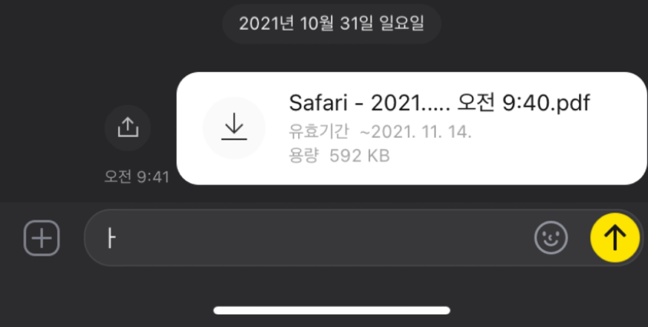 5. 카카오톡을 확인하면 PDF를 딴 파일이 전달된것을 확인할수 있다.